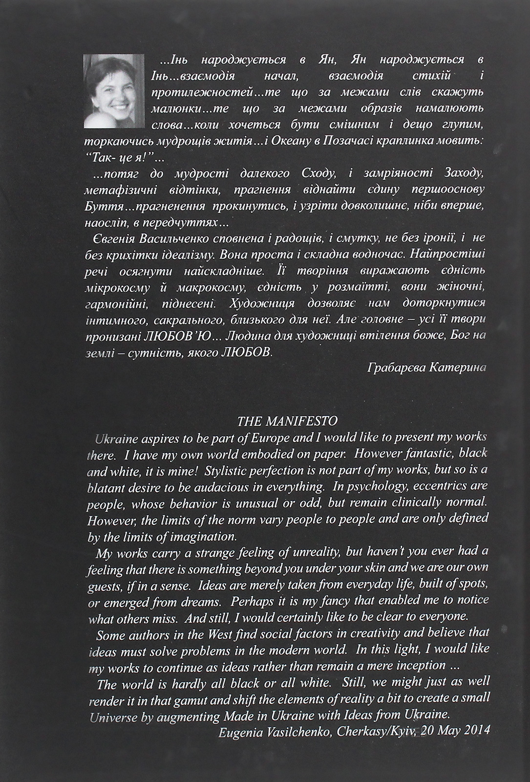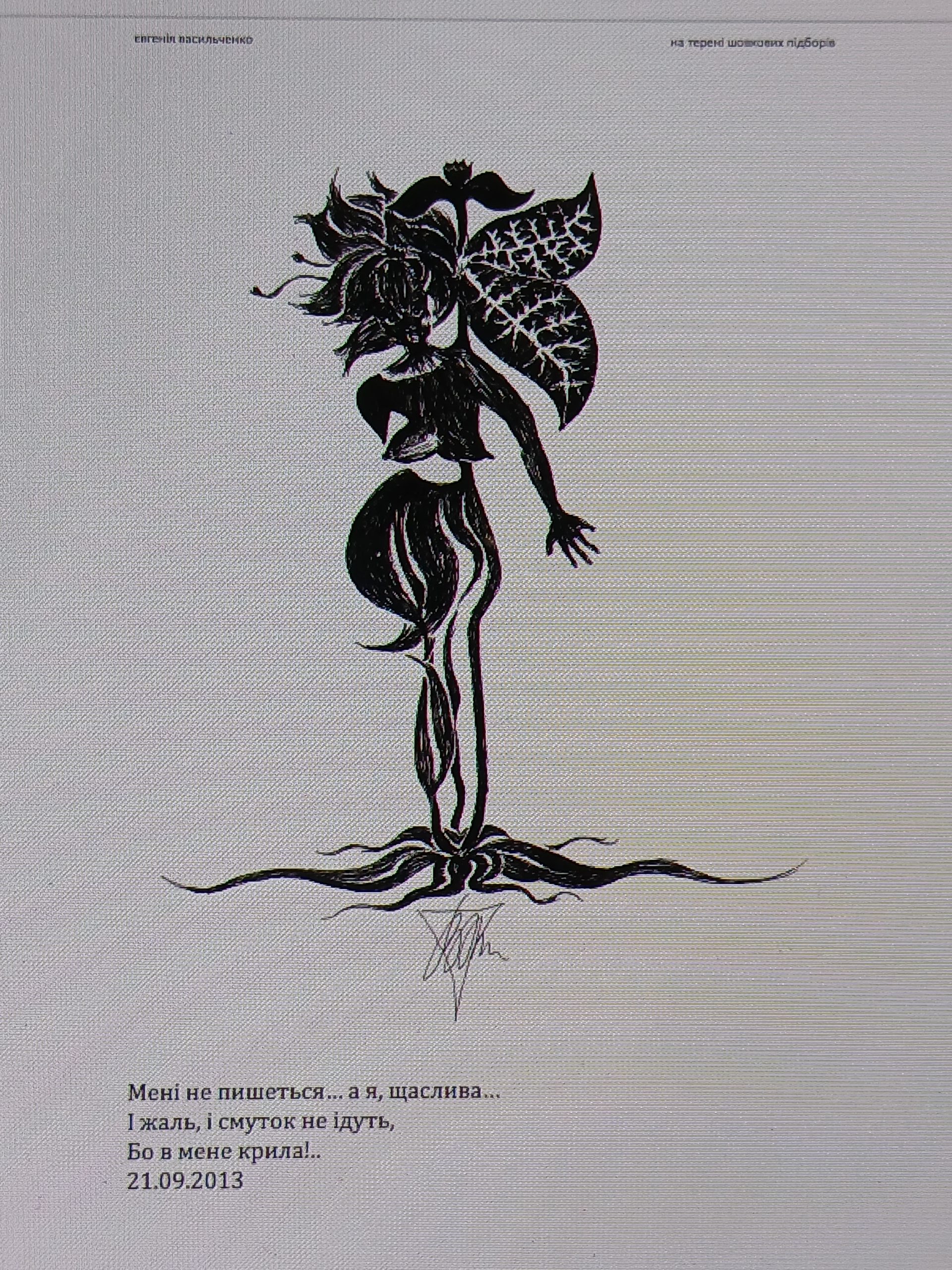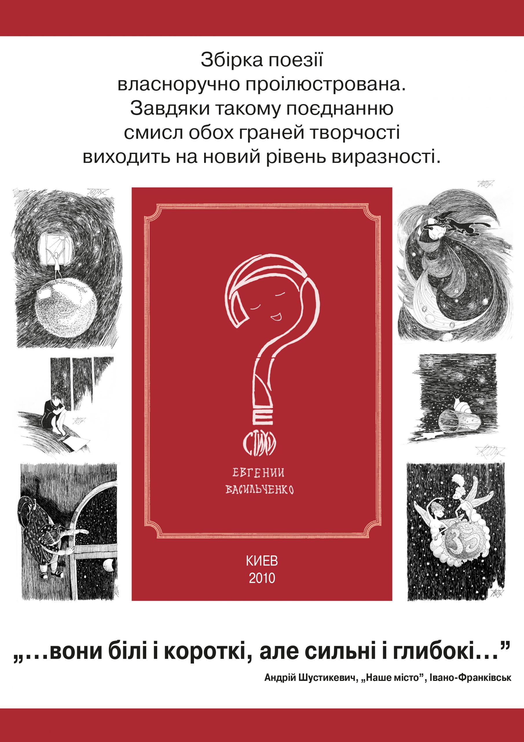 З відгуків: “Євгенія Васильченко уже кілька років пише вірші. Вони білі і короткі, але сильні і глибокі. Художниця-поетеса спромоглася самостійно видати першу збірку власноручно проілюстрованої поезії. Завдяки такому поєднанню смисл обох граней творчості виходить на новий рівень виражальності”