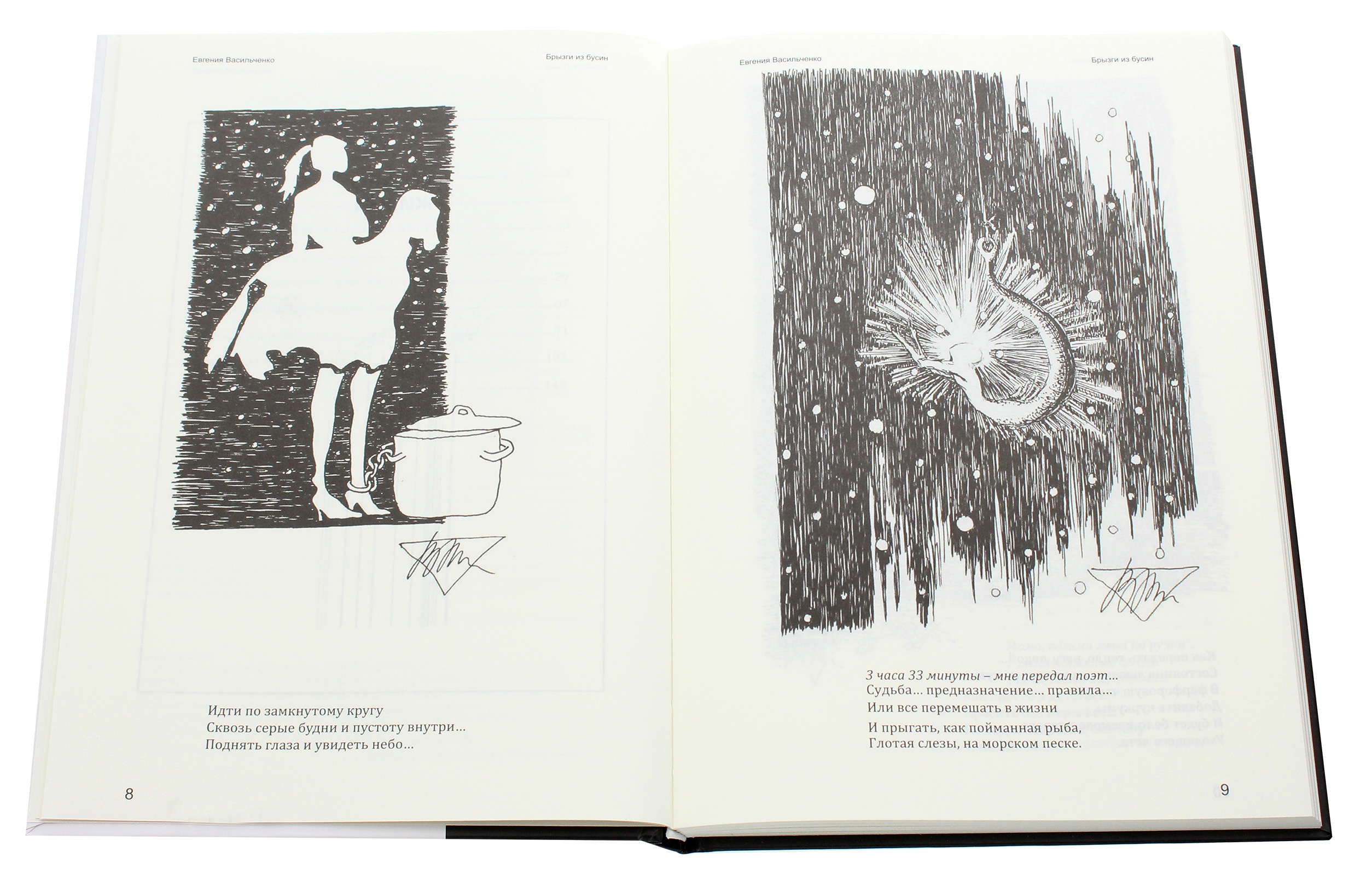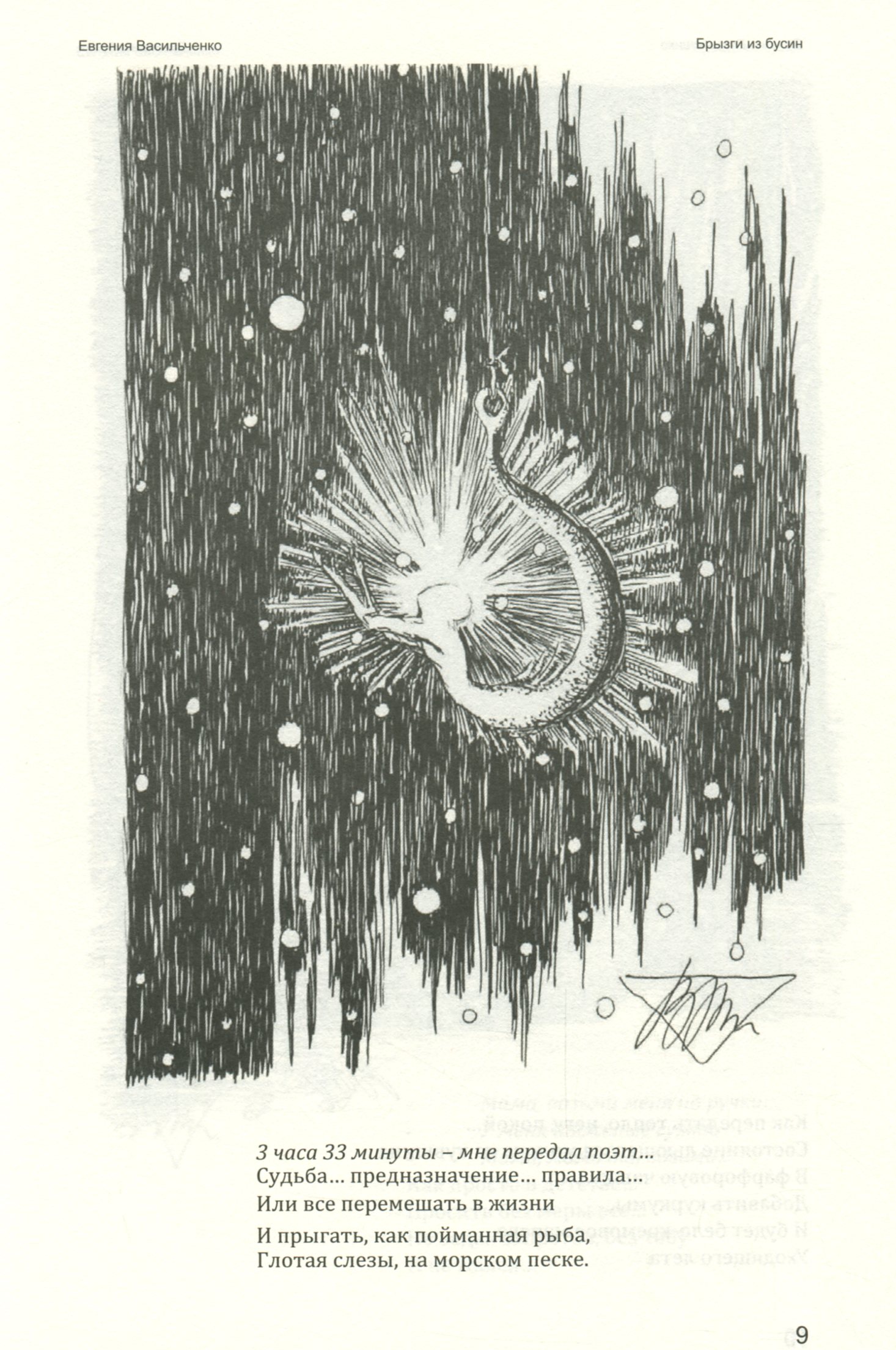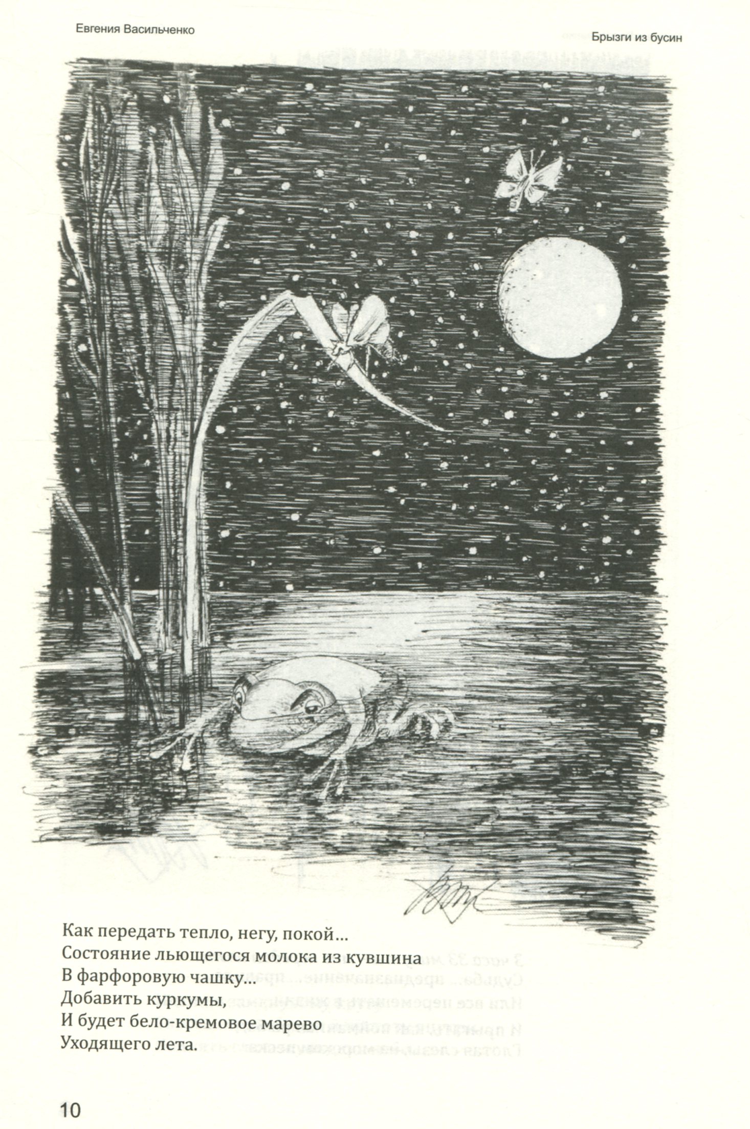 З відгуків: “Євгенія Васильченко уже кілька років пише вірші. Вони білі і короткі, але сильні і глибокі. Художниця-поетеса спромоглася самостійно видати першу збірку власноручно проілюстрованої поезії. Завдяки такому поєднанню смисл обох граней творчості виходить на новий рівень виражальності”